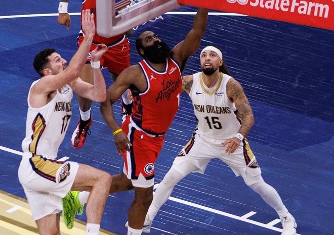 從快船常規(guī)賽核心哈登說(shuō)起。哈登休賽期年滿36歲的情況下,新賽季開打后,他是快船表現(xiàn)最好的球員,沒有之一。除了揭幕戰(zhàn)只拿到15分之外,之后5場(chǎng)比賽連續(xù)得分20+,場(chǎng)均貢獻(xiàn)23分5籃板9助攻,兩項(xiàng)命中率是48%+39%。只用一個(gè)數(shù)據(jù)就能體現(xiàn)哈登的價(jià)值,本賽季哈登在場(chǎng)時(shí),快船百回合贏對(duì)手3.2分;當(dāng)他不在場(chǎng)時(shí),快船百回合輸對(duì)手12分,On-Off值是+15.2。這支快船到底有多糟糕?哈登本賽季年薪3920萬(wàn),只拿了一份工資,卻要干三份活。第一,得分??齑惣臼讋伲寝Z30+7+7,帶領(lǐng)替補(bǔ)一波流打花對(duì)面,哈登正負(fù)值+22。